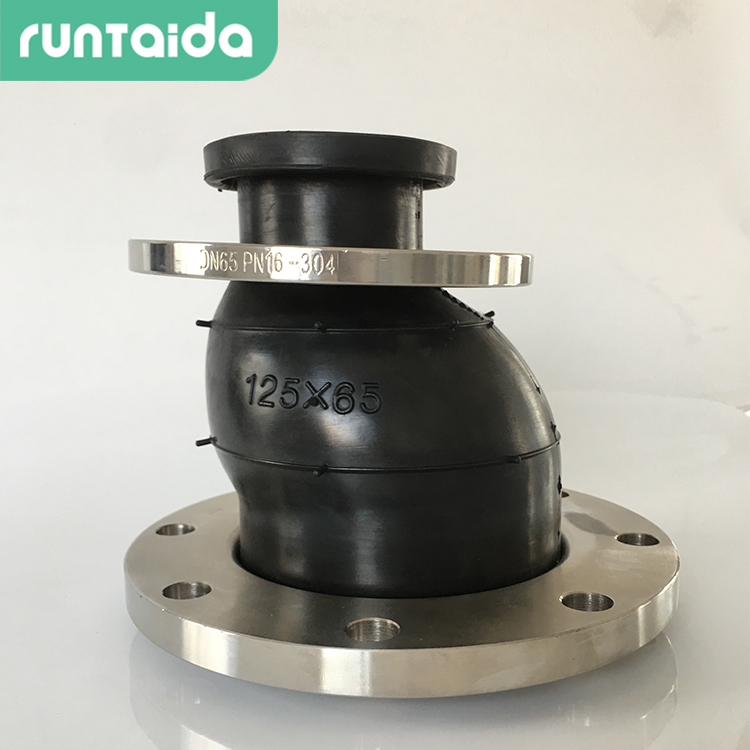 偏心異徑(jìng)橡膠接頭角位移是:橡(xiàng)膠接頭兩個端麵的垂直中心線與原(yuán)中軸線的夾角之和。